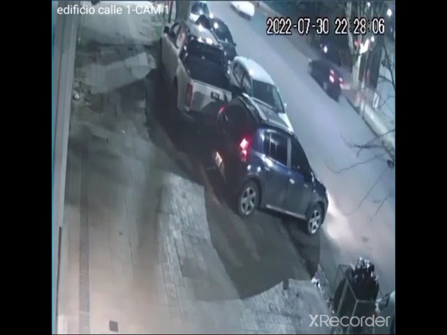 Fue en la zona de 1 y 58, donde las cámaras de seguridad muestran un auto Renault Sandero que estaciona lindero a la camioneta, y en cuestión de tan solo 4 minutos se llevan la rueda de auxilio.